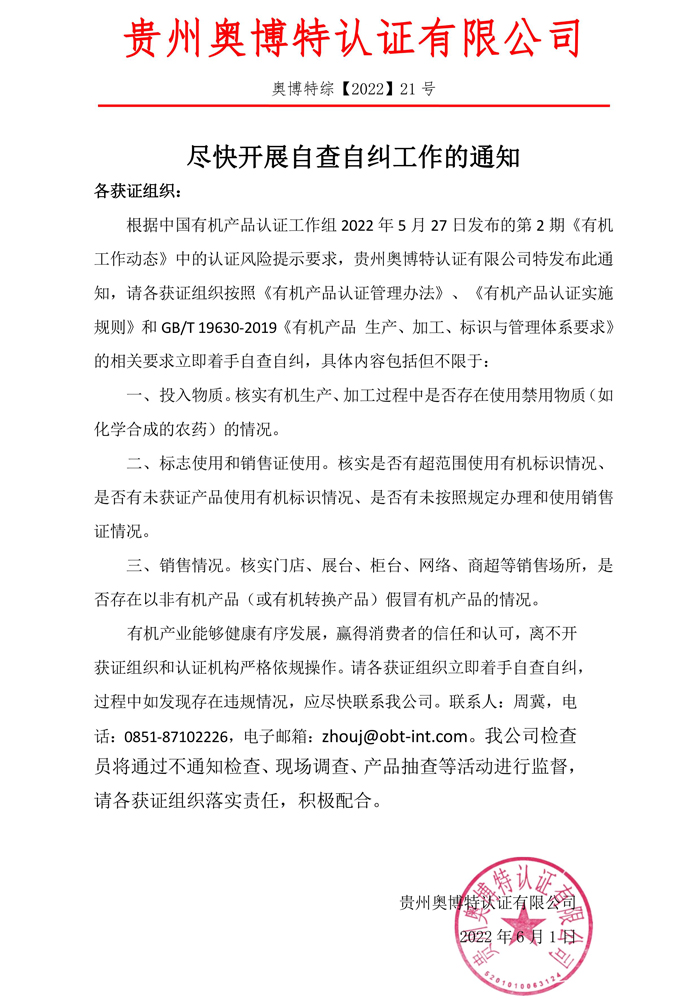 盡快開展自查自糾工作通知